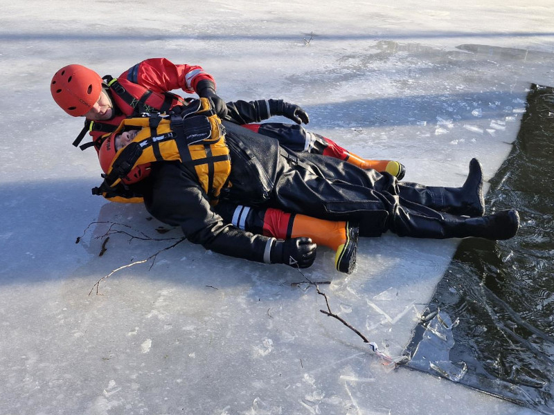 Ústecký kraj - V kalendáři Tři králové, tedy konec Vánoc a na teploměru 15 stupňů pod nulou, což láká k nejrůznějším kratochvílím, jako je mimo jiné bruslení a pohyb na zamrzlých plochách rybníků, jezer a řek. Policisté poříčního oddělení v Ústeckém kraji jako každoročně vyráží během zimních měsíců na vodní plochy prozkoumat tloušťku ledu a procvičit si, jak postupovat, dojde-li k propadnutí ledu a následnému pádu do ledové vody.