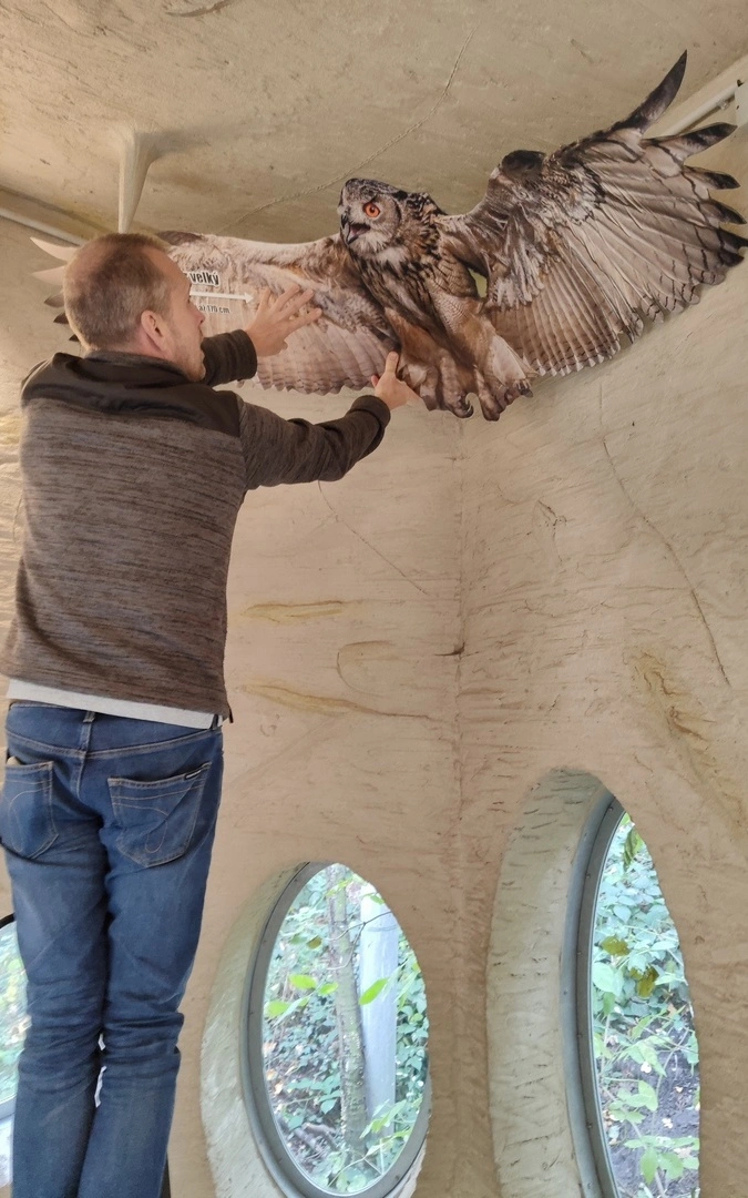 Soví jeskyně byla postavena před 3 lety a jejími obyvateli jsou výři virginští a puštíci bradatí.