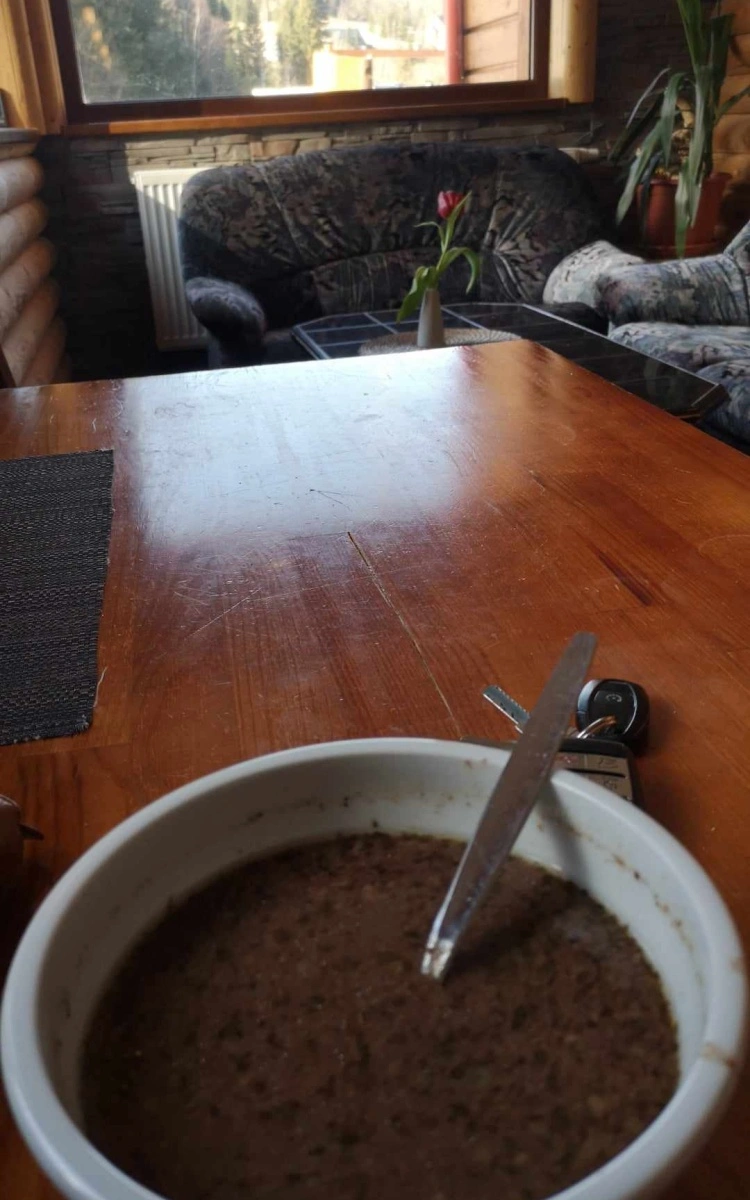 Oběd či pauza před večerní lyžovačkou v Potůčkách? My tentokrát neodolali zabijačkové polévce. Foto: jip
