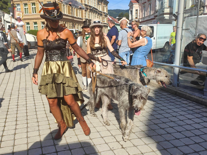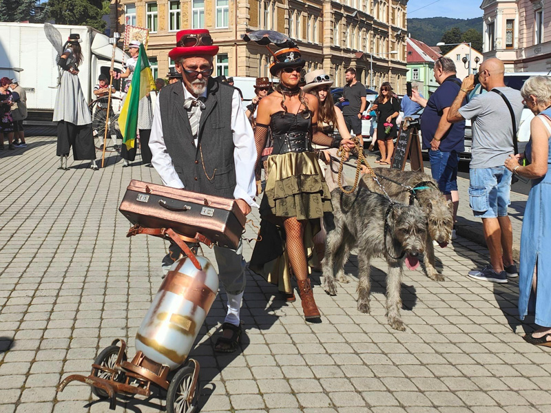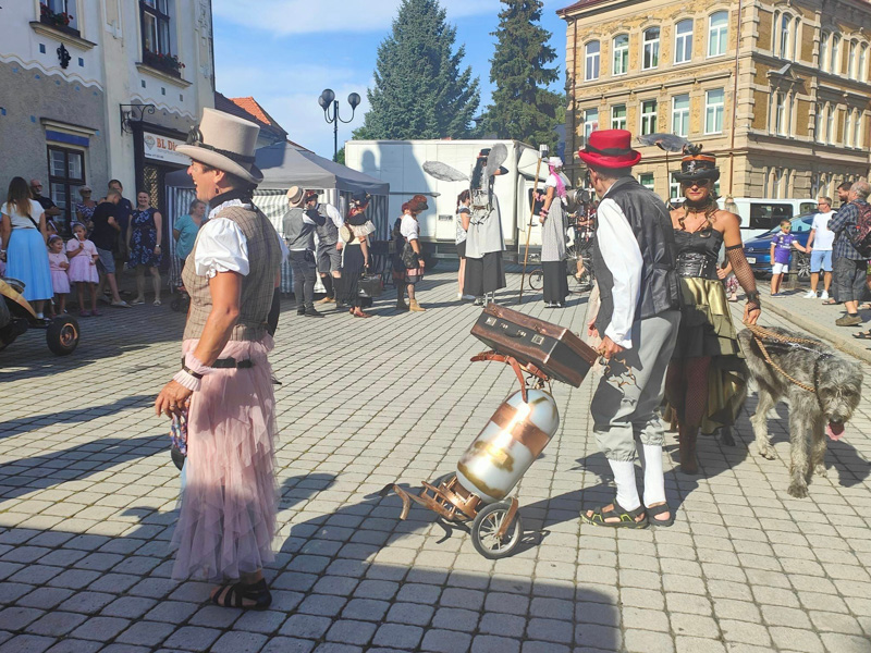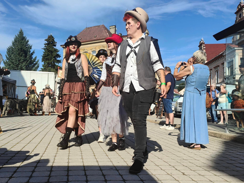 V téměř celém městě vládla slavnostní atmosféra. V ulicích stálo plno stánků s nejrůznějšími lákadly, centru města vévodily pestré barvy, vůně a potkat jste mohli řadu zajímavých lidí. Například trojici, která do Oseka dorazila v kostýmech a vypadala, jako kdyby právě přijela z natáčení Vynálezu zkázy.