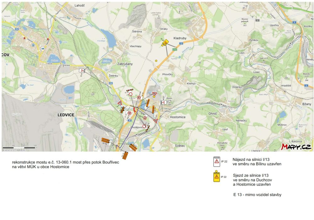Hostomice - V pondělí 30. června zahájí ŘSD práce na silnici I/13. Opravovat se bude most přes potok Bouřlivec, práce budou probíhat za úplné uzavírky sjezdové a nájezdové větve ve směru na Bílinu. Práce potrvají do října letošního roku.