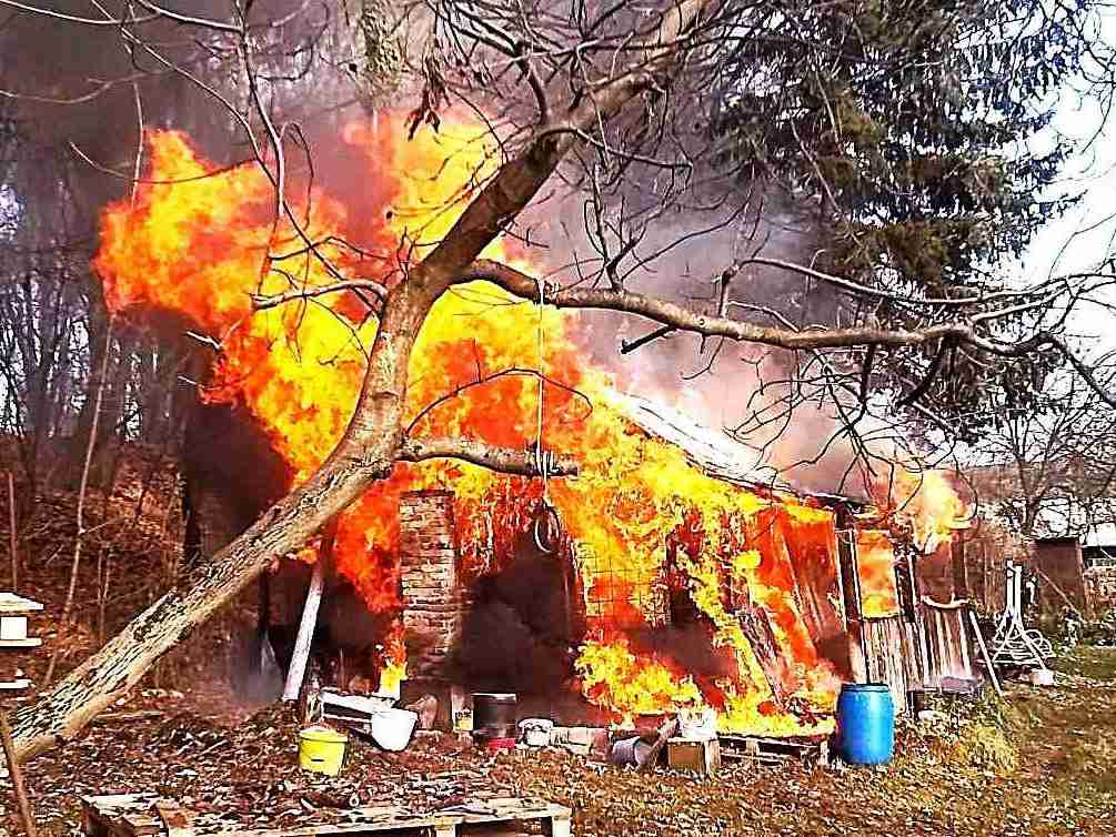 Po příjezdu hasičů na místo události, bylo zjištěno, že chatka je celá v plamenech.