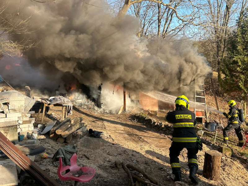 Ve 13:13 hodin vyjely tři jednotky požární ochrany k nahlášenému požáru zahradní chatky u Ústí nad Labem. Po příjezdu na místo se objekt nacházel celý v plamenech. Během zásahu hasiči nalezli propanbutanovou lahev, kterou z bezpečnostních důvodů ochladili.