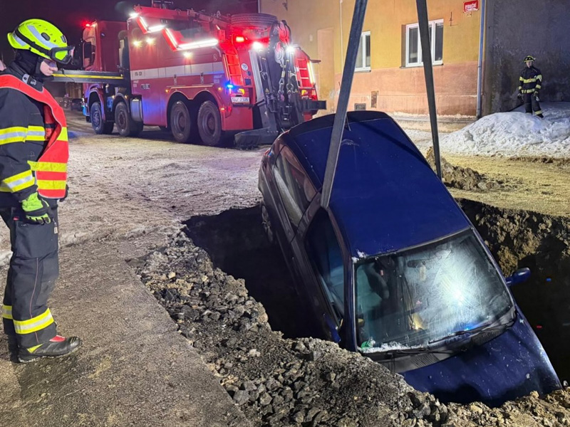 Hrob - V sobotu večer vyjely jednotky profesionálních hasičů ze stanice Duchcov a dobrovolní hasiči z Hrobu k dopravní nehodě osobního automobilu, který skončil ve výkopu.