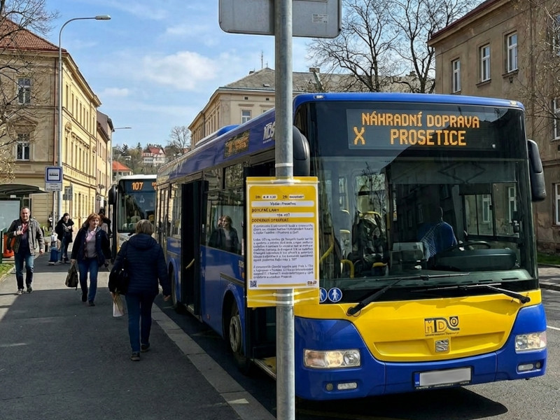 Cestující linkou 107 ve směru do Prosetic musí počítat s tím, že spoje budou končit svou jízdu už v zastávce Pražská. Cílová sekce Pražská – Prosetice a zpět bude v pracovní dny obsluhována náhradní linkou X.