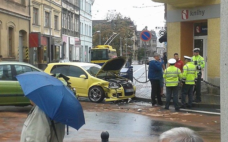 Teplice - Ke střetu dvou osobních automobilů došlo ve čtvrtek v centru Teplic u Benešova náměstí. Srazil se tam žlutý VW Golf a zelený Renault Mégane. Na místě museli zasahovat hasiči. Nehodu vyšetřuje dopravní policie.