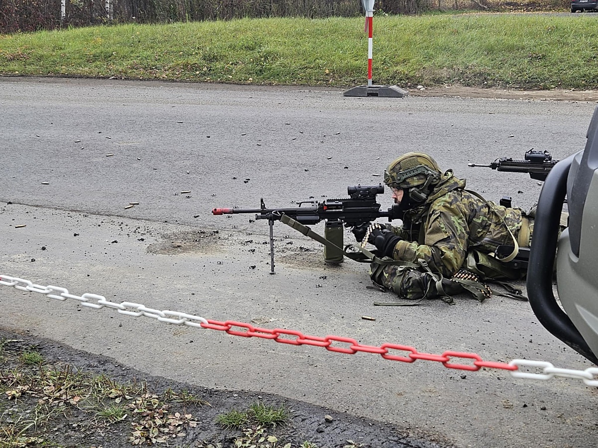 Podle scénáře museli obránci čelit střelci i zapojilo se i kulometné hnízdo, které je součástí strážní hlídky. Cílem je, aby vojáci dělali chyby teď, při nácviku, a ne v ostré akci. „Když je chyb hodně, tak to opakují znova,“ dodal Křiček.