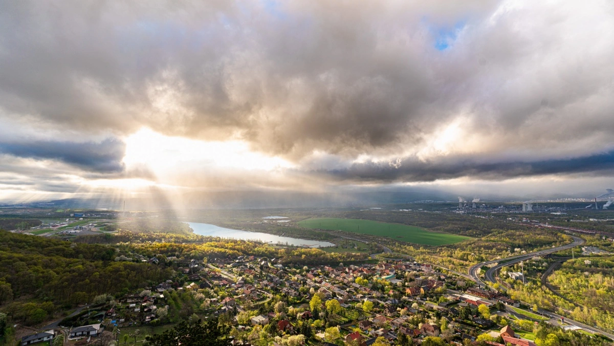 Most, Ústecký kraj – Včerejší proměnlivé počasí, které se přehnalo přes celý Ústecký kraj, připravilo obyvatelům severních Čech nevídanou podívanou. Zatímco na mnoha místech se střídal déšť s bouřkovými mračny, milovníci krajinné fotografie měli žně. Jedním z těch, kteří dokázali zachytit syrovou krásu našeho regionu, je fotograf Rastislav Michalko. Jeho aktuální snímek z ochozů hradu Hněvín, na kterém sluneční paprsky jako reflektor osvětlují vodní nádrž Matyldu uprostřed dramatických mračen, se okamžitě stal hitem mezi patrioty z celého kraje.